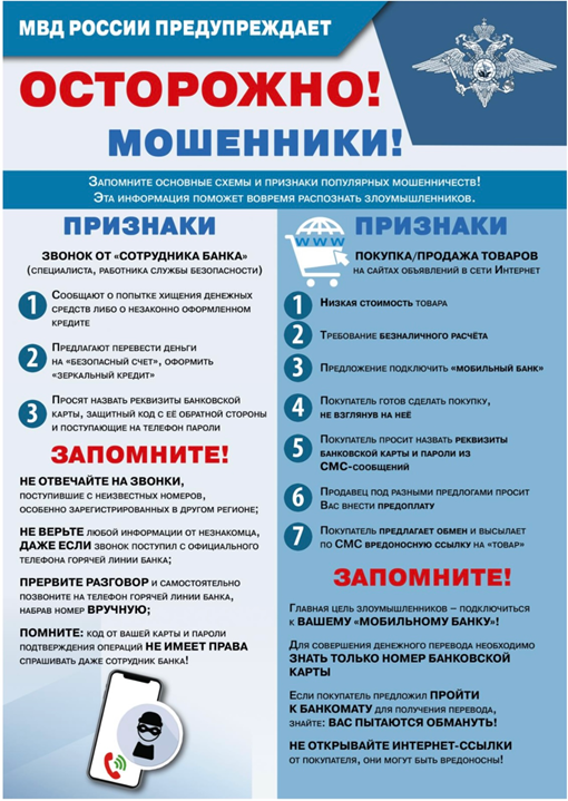 Злоумышленники, представляясь сотрудниками правоохранительных органов (ФСБ, МВД, Следственного комитета, прокуратуры РФ), убеждают граждан, что ранее похищенные в результате мошеннических действий денежные средства будут возвращены, взамен, требуя прислать видеозапись процесса совершения поджога имущества, что само по себе будет квалифицировано, как диверсионный (террористический) акт и повлечет предусмотренную законом уголовную ответственность. Также, имеются случаи вербовки граждан для совершения данных ПРЕСТУПЛЕНИЙ в различных мессенджерах за уплату денежного вознаграждения или прекращения уголовного преследования за ранее оказанную финансовую помощь ВСУ.